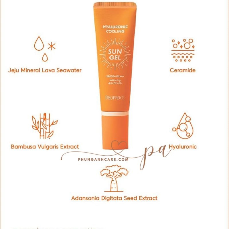 Gel chống nắng làm mới nhẹ nhàng với axit hyaluronic Deoproce Hyaluronic Cooling Sun Gel SPF50+/PA+++ được hấp thu nhanh chóng mà không gây bết dính, dưỡng ẩm sâu, không gây cảm giác dính hay lem trên da. Bảo vệ đáng tin cậy khỏi tác động tiêu cực của ánh nắng mặt trời.