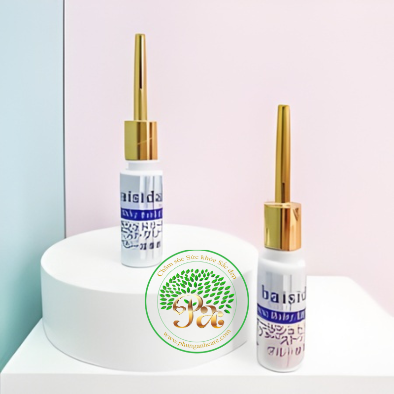 Keo dán mi Baisidai Japanese Baby Eyelash Primer, một loại keo chuyên dụng dùng để gắn mi giả và tạo mí mắt hai lớp. Công dụng: Chủ yếu được sử dụng như keo dán mi chuyên nghiệp để gắn mi giả với mi thật, tạo vẻ ngoài tự nhiên và lâu dài. Sản phẩm cũng có thể được sử dụng như keo tạo mí mắt hai lớp. Công thức: Thường là dạng gel trong suốt, khô nhanh và tạo độ bám dính chắc chắn, bền lâu. Độ bền: Không thấm nước và được thiết kế để giữ mi cố định cả ngày mà không bị bong ra. An toàn: Công thức dịu nhẹ và không gây kích ứng cho vùng da nhạy cảm quanh mắt.