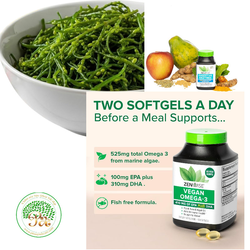 Omega 3 thuần chay Zenwise: Hỗ trợ sức khỏe khớp, tim mạch và não bộ, chức năng miễn dịch và thị lực cho sức khỏe hàng ngày. Liều dùng: 2 viên nang thuần chay; dùng trong 60 ngày.