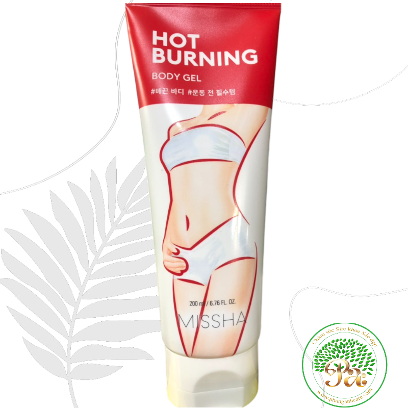 Sản phẩm này là tuýp gel làm săn chắc da MISSHA Hot Burning Body Gel 200ml, được thiết kế để giúp làm săn chắc da và tạo dáng thon gọn cho các vùng như bụng, cánh tay và đùi. Sản phẩm có hiệu ứng kép "Nóng & Mát": làm mát khi thoa và làm nóng khi thẩm thấu để kích thích tuần hoàn máu. Công thức chứa các thành phần tự nhiên bao gồm tảo biển, chiết xuất cam đắng và caffeine. Giúp cải thiện độ đàn hồi của da và giảm sự xuất hiện của cellulite.